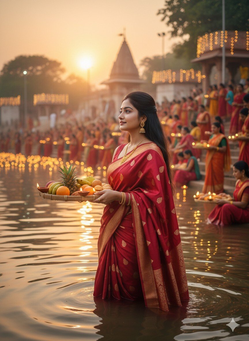 • Create a modern Happy Chhath Puja 2025 poster combining tradition and AI art style.